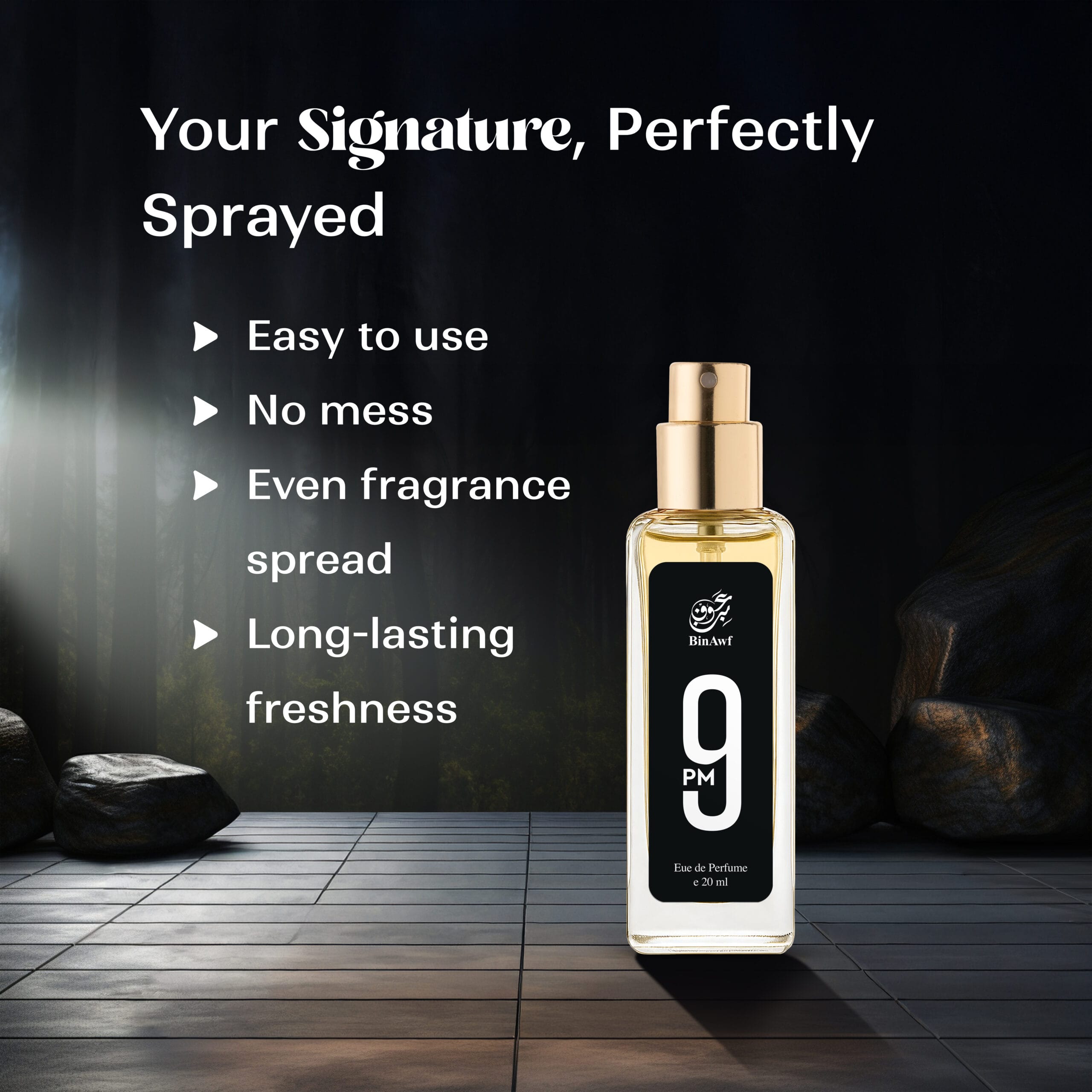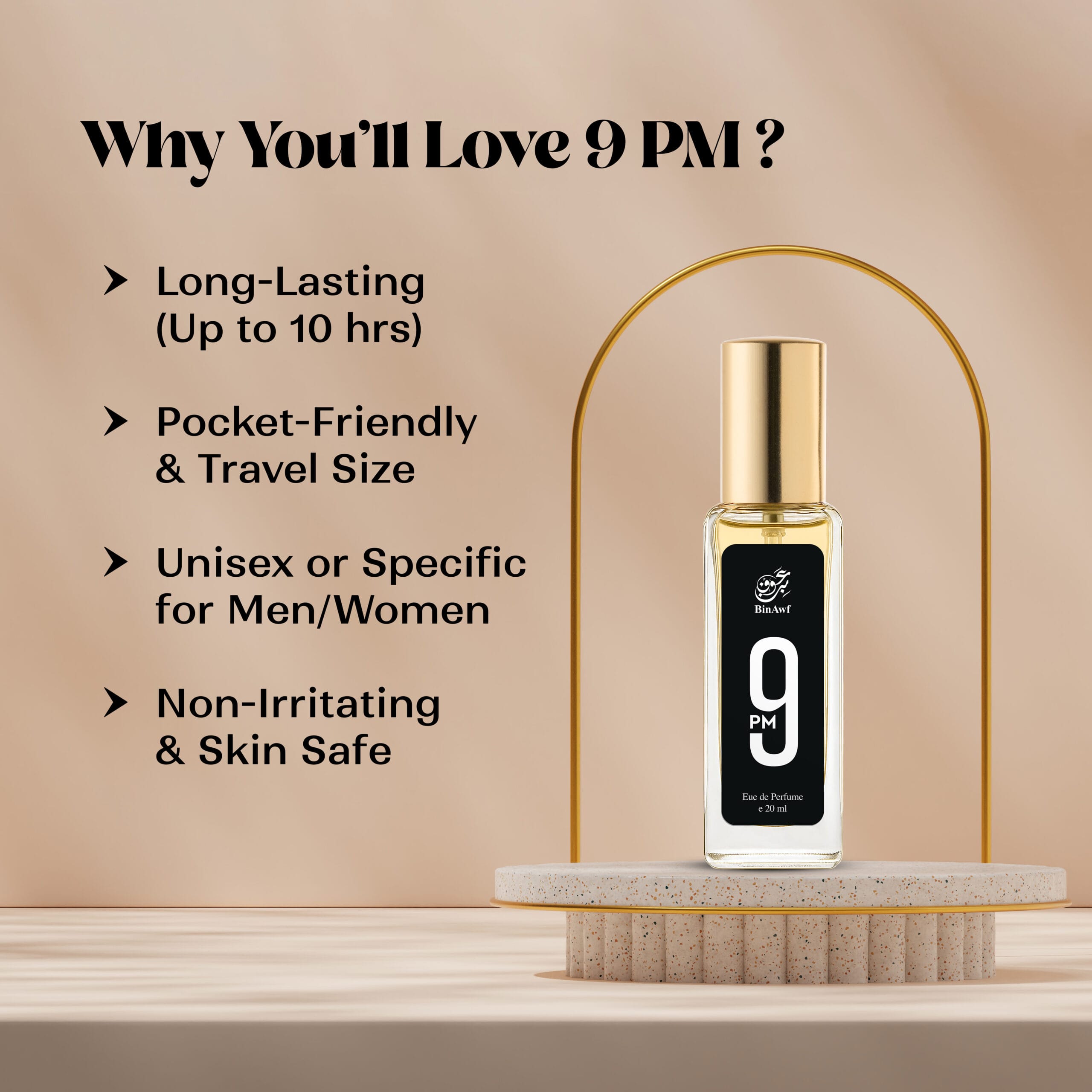 • BinAwf 9 PM Perfume creats a bold and memorable aroma that’s perfect for evening wear and special occasions.