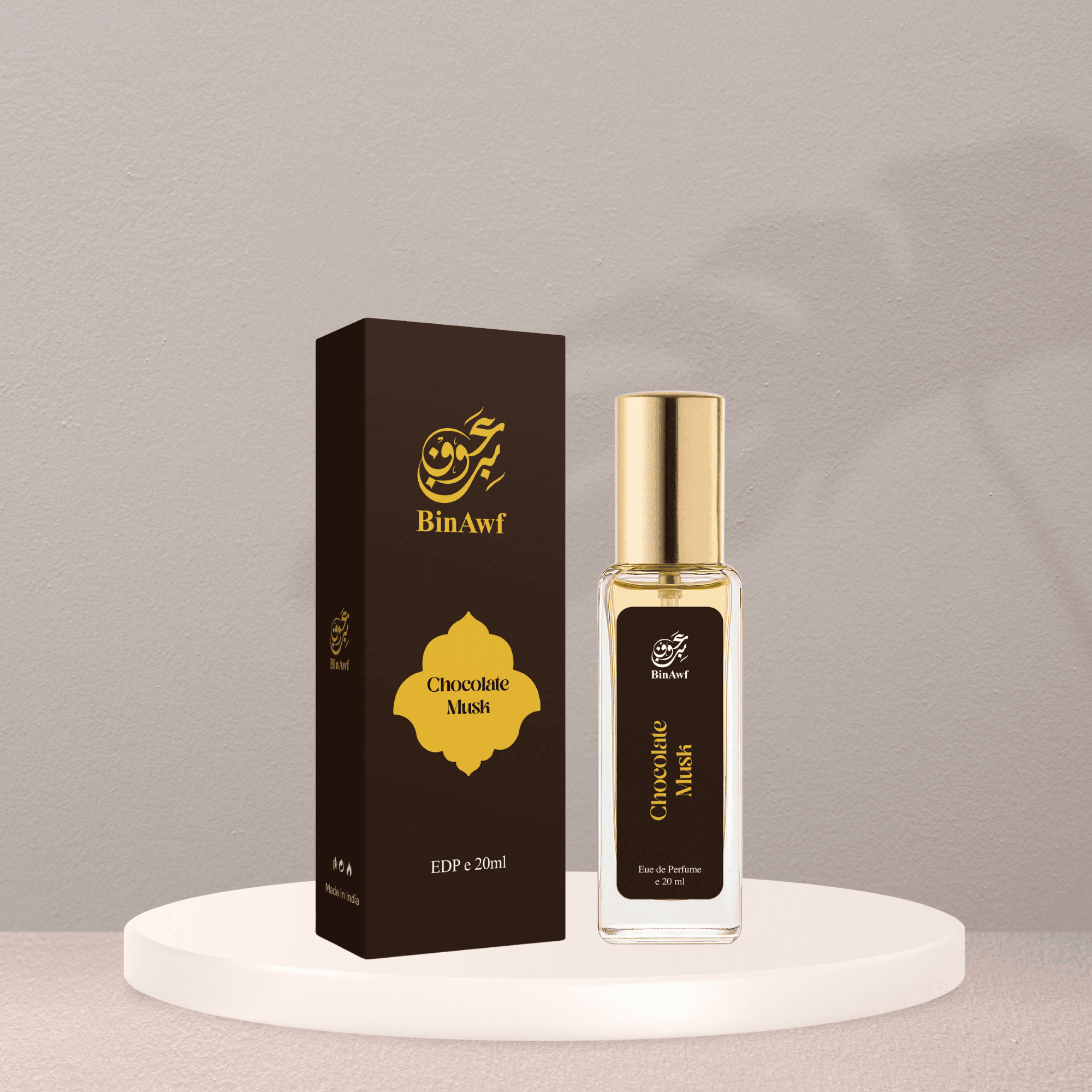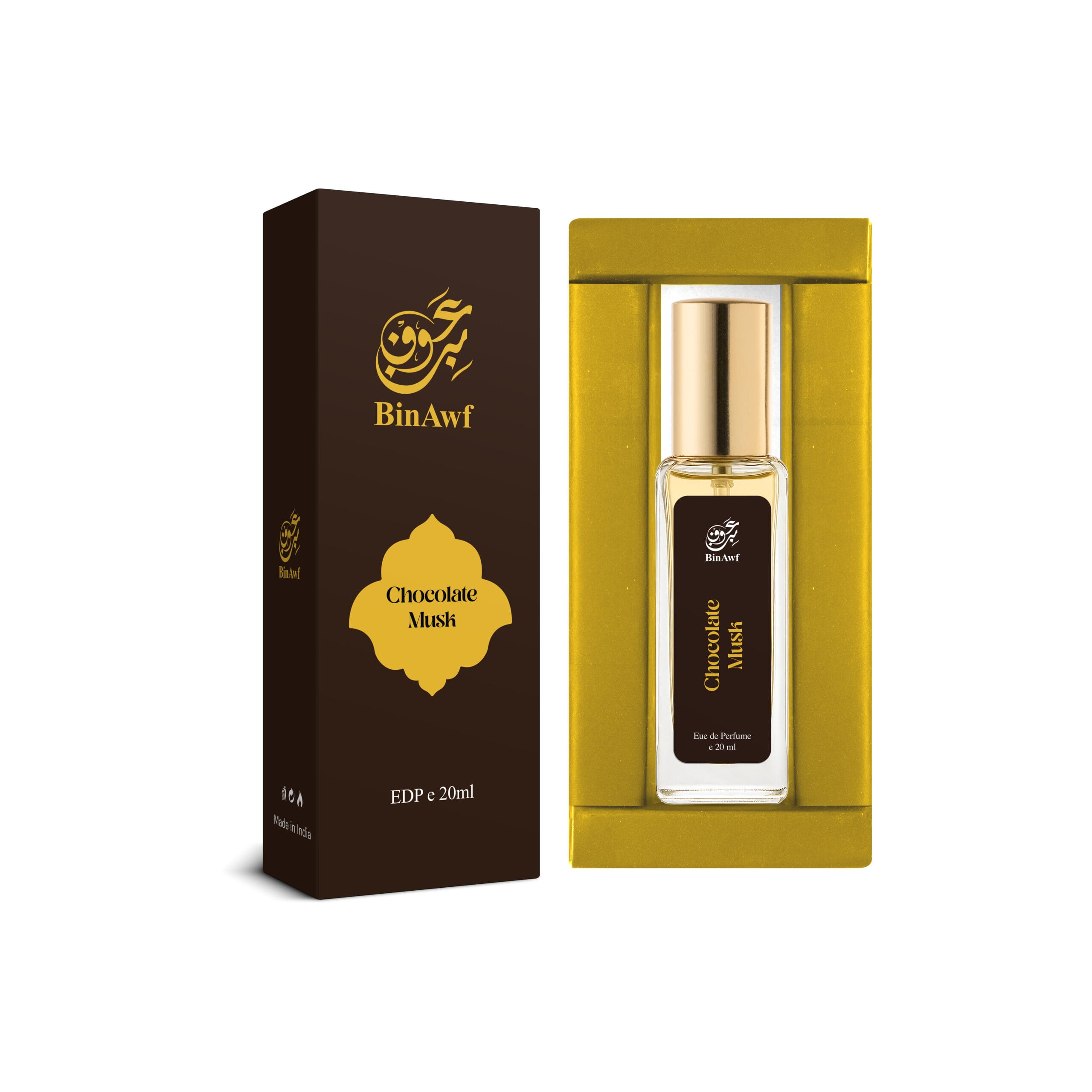 - BinAwf Chocolate Musk Attar opens with delectable top notes of rich Cocoa and indulgent Chocolate, leading into a smooth heart of Caramel and warm Musk. The fragrance settles into a sweet and comforting base of Orange Flavor and Vanilla, creating a delightful and irresistible scent.